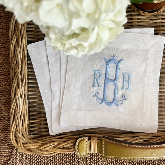 Set of 4 Plainstitch Cocktail Napkin - Customized Monogram